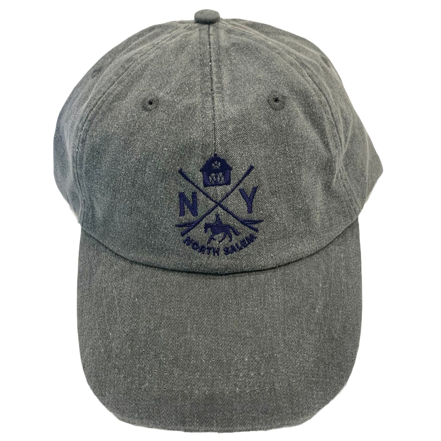 This canvas baseball cap with a leather adjustable back strap features our iconic North Salem design with cotton embroidery.