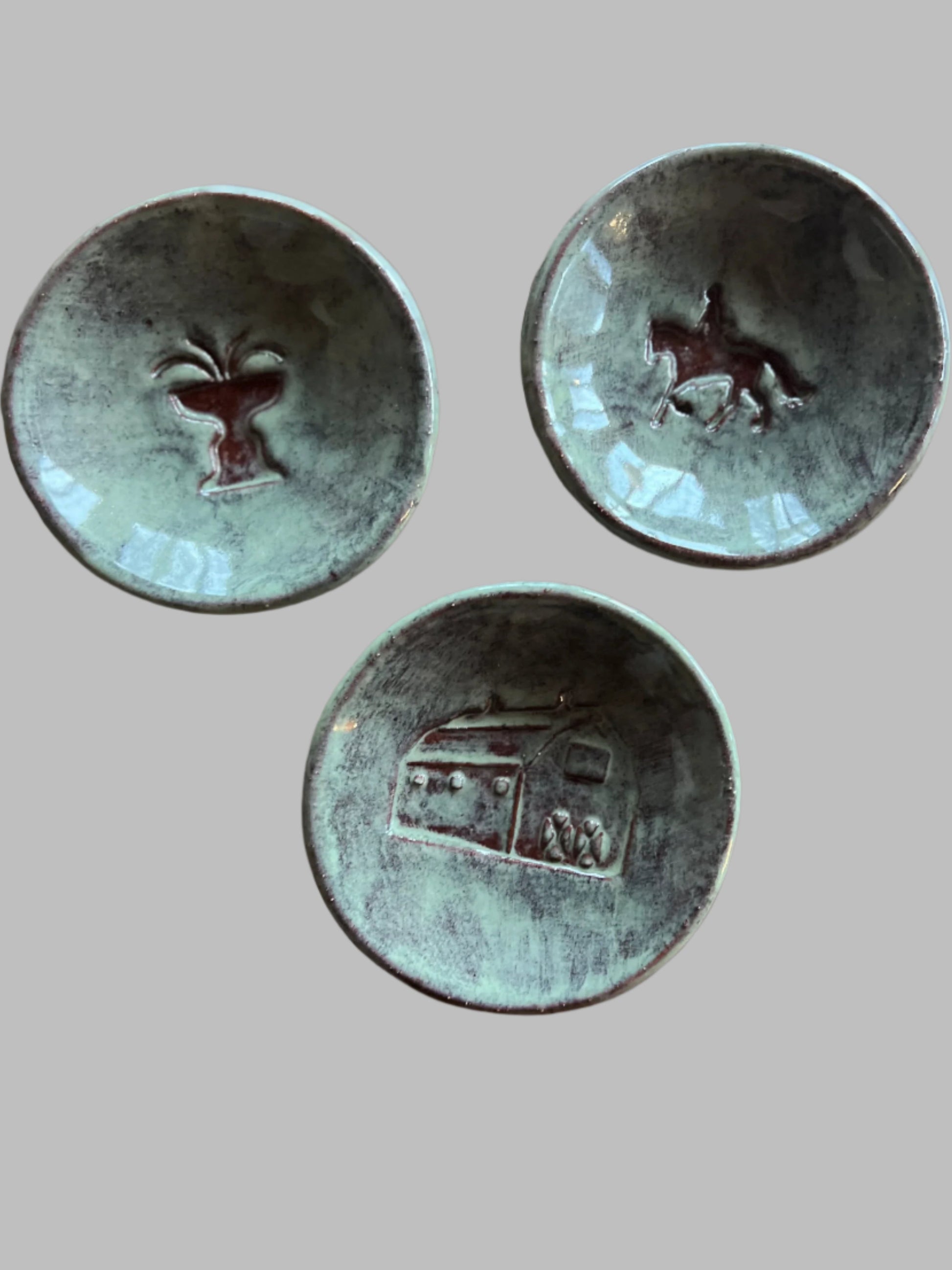 We've collaborated once again with our friends at Prodigal Pottery create these handmade ceramic ring dishes. Each dish is hand-pressed with our signature Cass Gilbert Fountain, Horse & Rider or Antique Barn design. Variations in each will be present due to their handmade nature. These ring dishes are sure to add a special touch to any home and make great gifts.