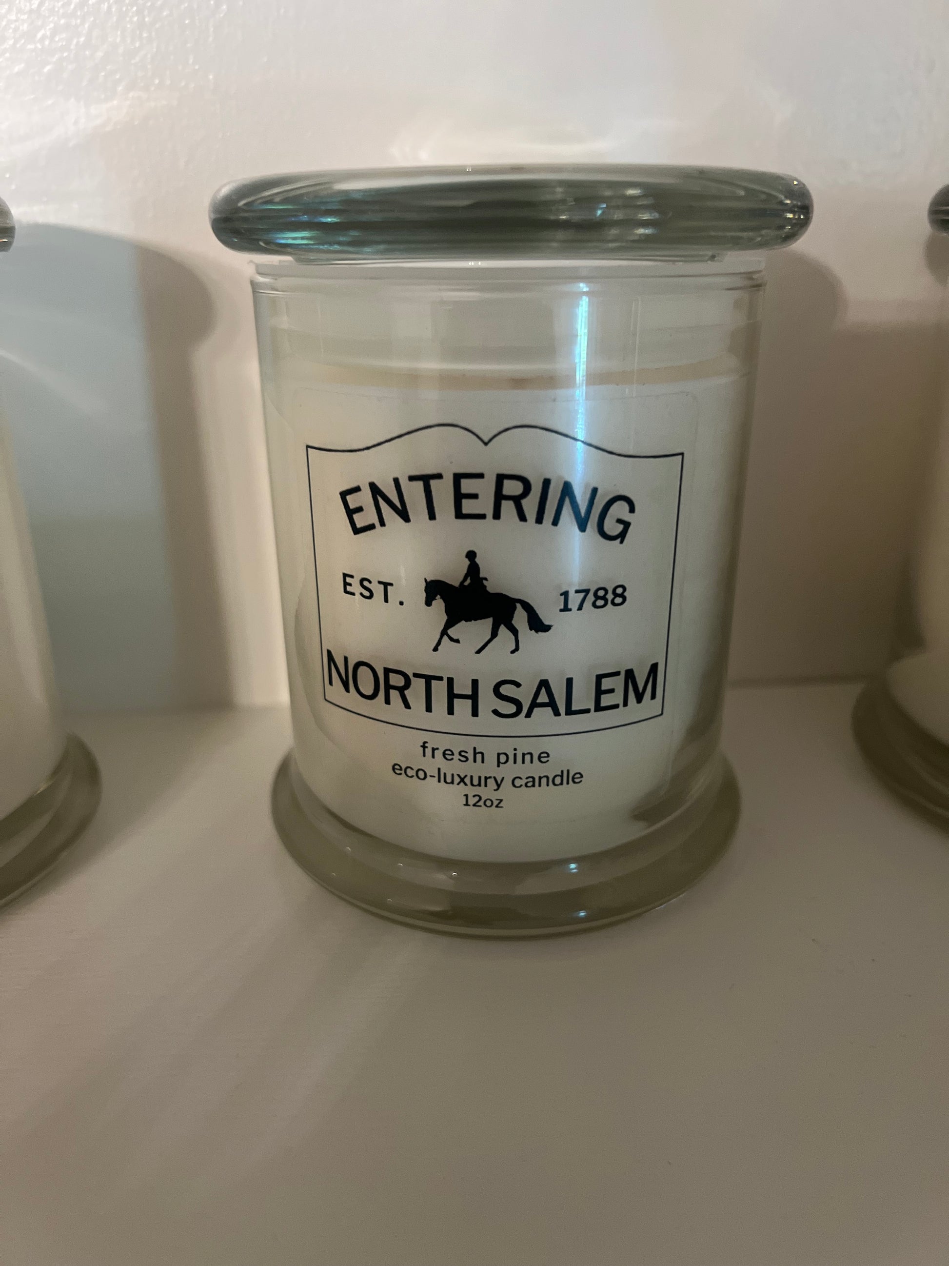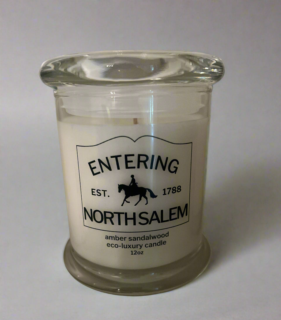 We've collaborated with a fantastic woman owned business in Massachusetts, USA to create these classic candles boasting North Salem's date of incorporation and our exclusive Horse & Rider motif. Non-GMO vegan coconut wax is infused with essential and high-quality aroma oils and then hand-poured into a reusable stylish glass jar with a lead-free cotton wick to create a genuinely sustainable candle.