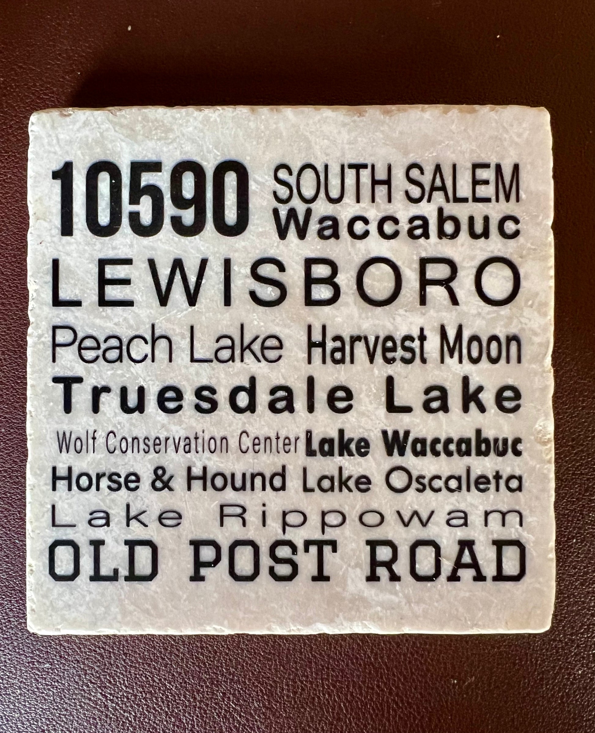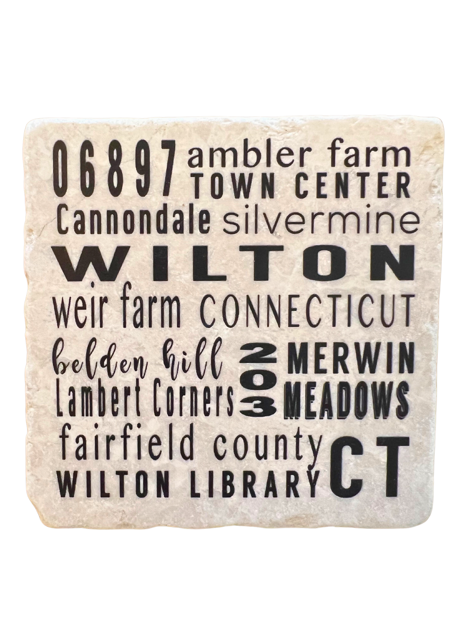 We've collaborated with a small batch maker in Newport, Kentucky USA to create these gorgeous tumbled marble coasters.  They're handmade, and no two are alike.  Mix and match our exclusive CT and NY town designs to create the perfect accent for your coffee table, end table or bar.
